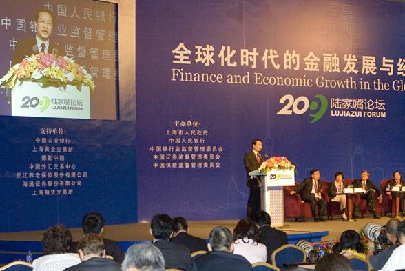 2009年5月15日-16日,“2009陆家嘴论坛”在上海举行。在当前国际金融危机的影响日趋扩散、世界经济明显下滑及中国经济增速趋缓的形势下,本次论坛围绕“全球化时代的金融发展与经济增长”这一主题,通过四场全体大会、三场浦江夜话和八场分论坛,就如何正确吸取国际金融危机的教训、各国怎样加固其金融体系以及金融如何更好地促进经济持续增长展开广泛的讨论。