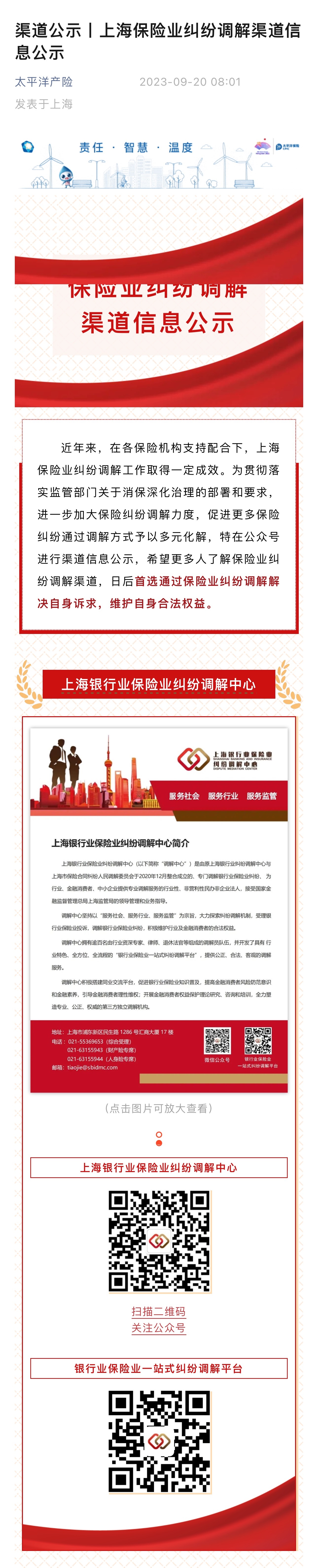 渠道公示:上海保险业纠纷调整渠道信息公示