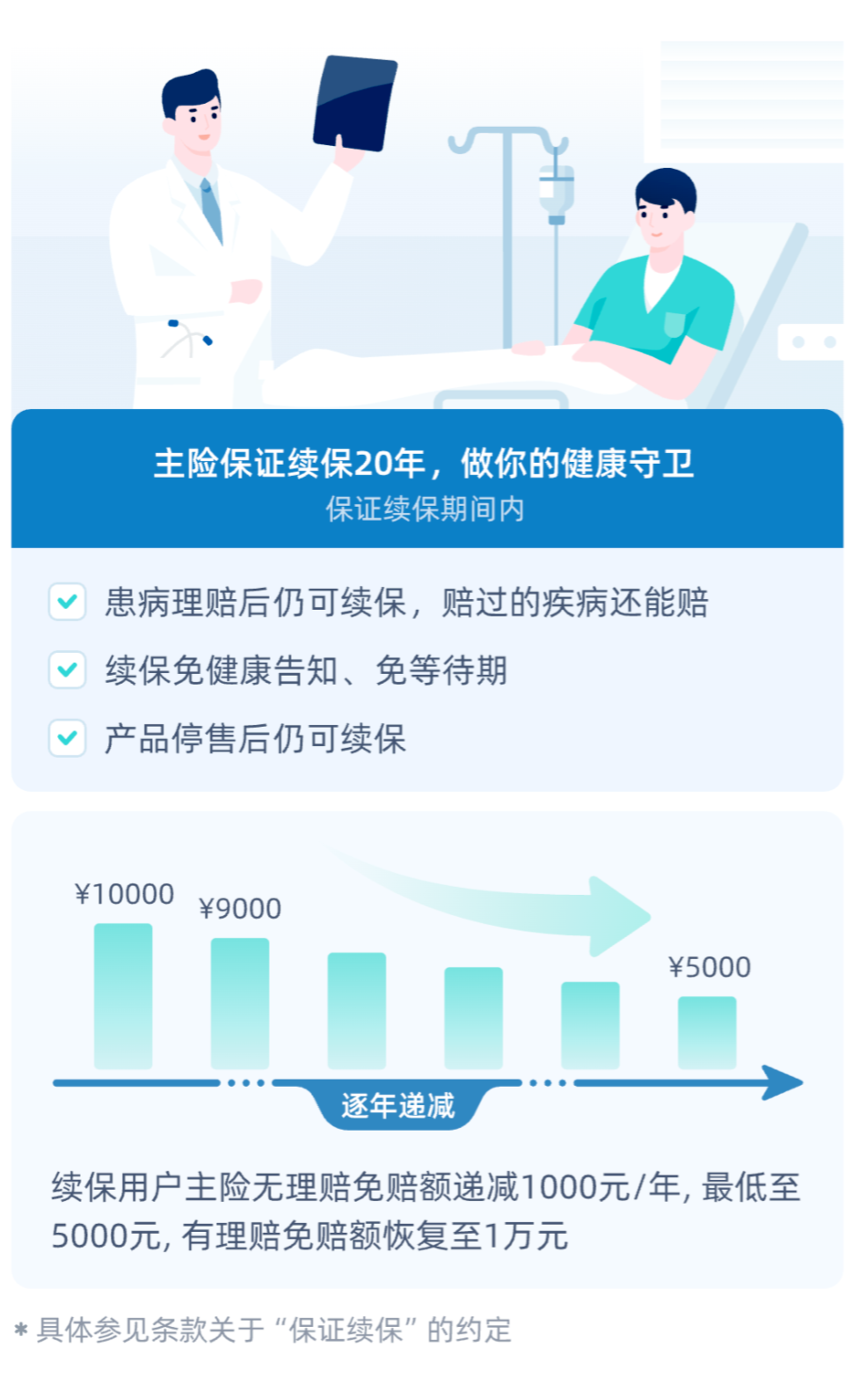 另外,无理赔情况下,每年免赔额可递减1000元,最低至5000元。