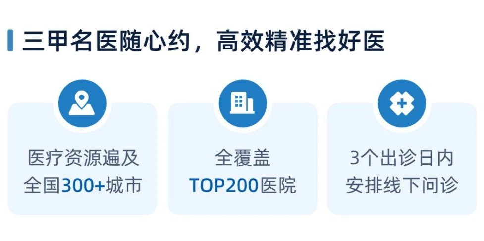 蓝医保·长期医疗险(好医好药版)为你提供全国300+城市TOP200三甲医院名医随心约服务,让你在就医过程中更加省心、省力。
