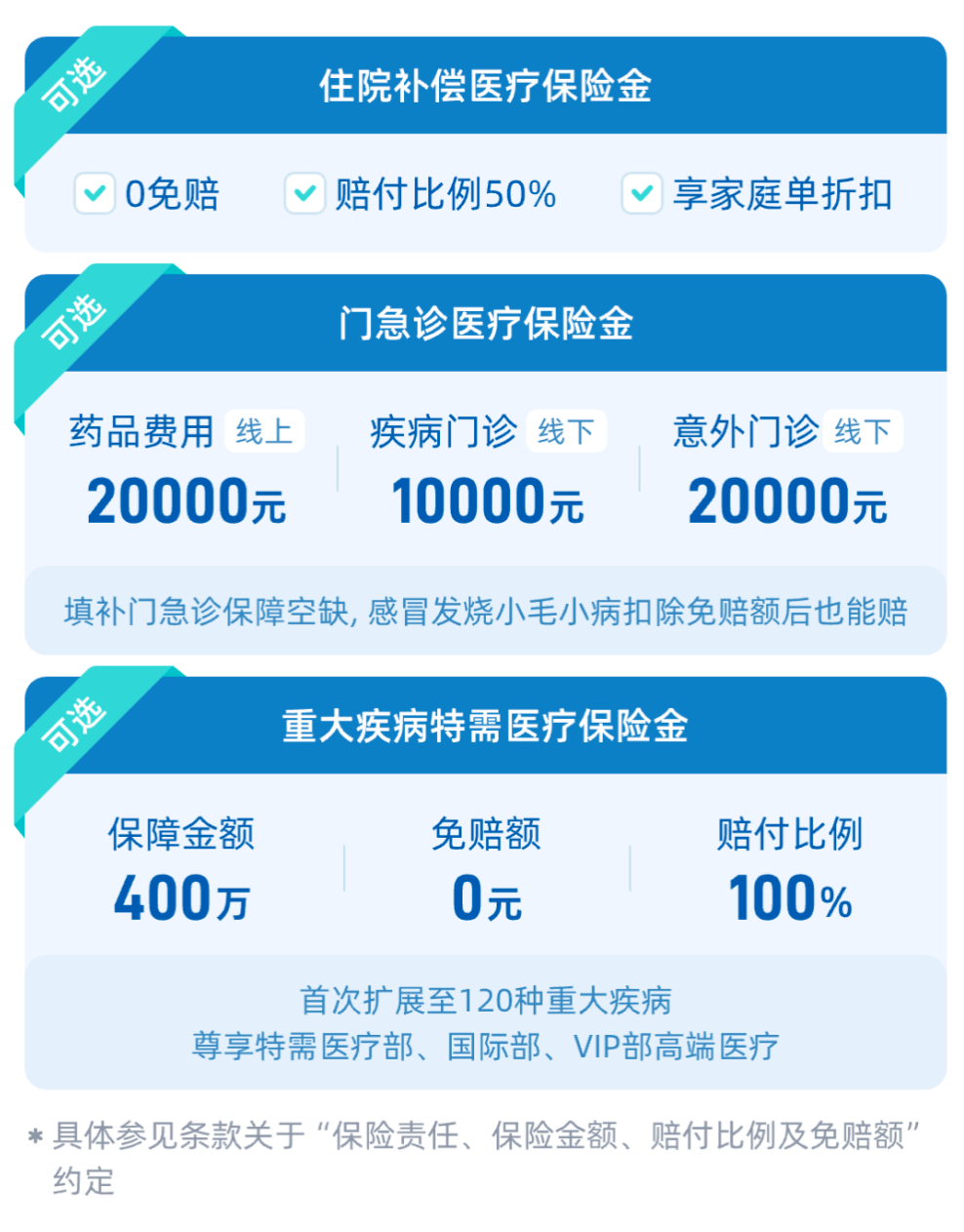 不过这只是特需医疗的体验责任,如果你想要更多赔付,不妨自己加上可选的120种重疾特需医疗保障,进一步提升保障水平哦~