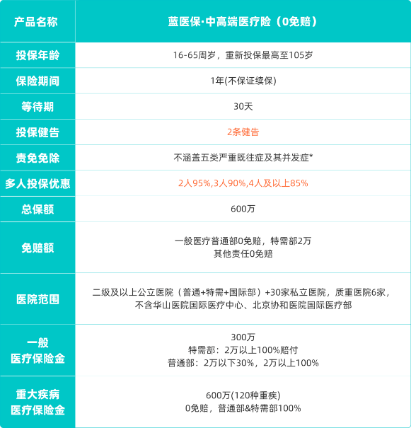 蓝医保·中高端医疗险(0免赔版)用更低的门槛、更广的覆盖、更优的看病体验,为你提供更安心优质的健康保障。