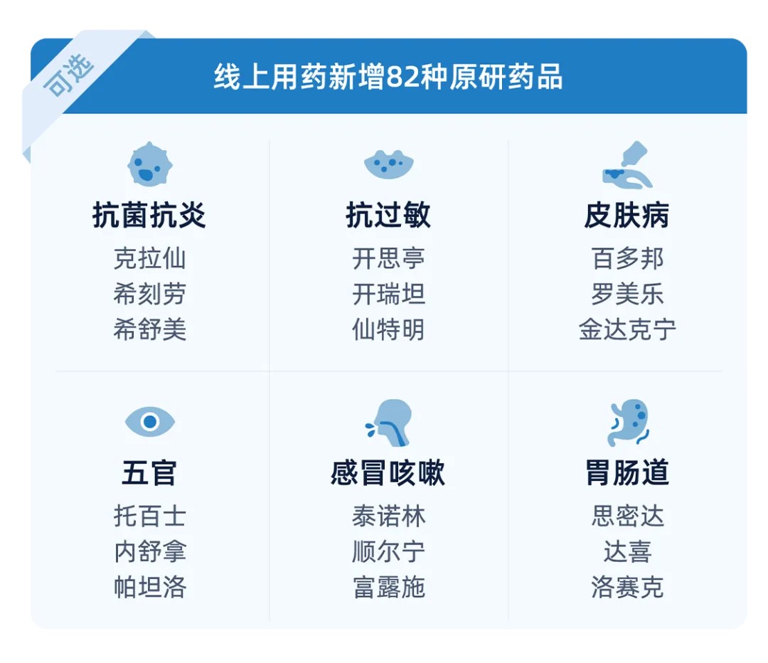 门诊原研药免费新增82种,疗效更好,比如我们常用的希舒美、达喜、开瑞坦等,日常用药品质直接拉满。