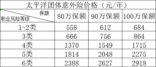 二、太平洋团体意外险保费参考