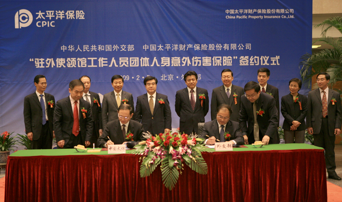 举行了“驻外使领馆工作人员团体人身意外伤害保险”合作协议签约仪式。根据协议,从今年开始,太保将为全球各个国家和地区近250个使领馆的5000多名