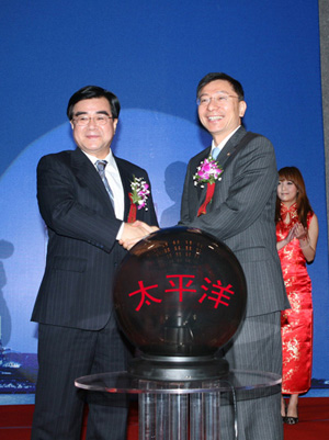 中国保监会副主席周延礼(左)、中国太平洋保险集团董事长高国富为中国太平洋保险航运保险事业总部的成立揭牌。 2009年12月3日,由上海金融服务办、上海保监局、复旦大学、中国太平洋保险共同举办的航运保险(上海)国际研讨会在上海西郊宾馆召开。来自中国保监会、上海市政府、上海金融办、上海保监局、上海市发改委、上海市建交委、上海市国税、地税局、上海市保险行业协会、中国海事仲裁委员会上海分会、中国船级社上海分社、交通运输部、同业保险公司、国际再保险公司、银行、公估行、律师、经纪人、航运机构、高校、学术机构及太平洋保险等单位150余人参加了会议。