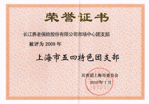长江养老市场中心团支部被评为“2009上海市五四特色团支部”