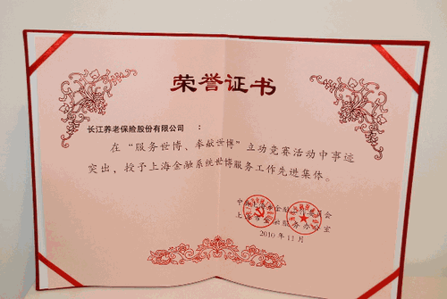 在市委、市政府以及市金融党委、金融办的领导下,我司全体干部员工积极投身世博会金融工作,全力以赴、勇挑重担,顽强拼搏、无私奉献,以优质高效的服务和平稳有序的运营,展示了专业养老金金融机构的优秀品质和专业形象,为举办一届“成功、精彩、难忘”的世博会作出了积极贡献。对于我司在世博期间的优异表现,市金融党委、金融办授予我司“上海金融系统世博服务工作先进集体”的荣誉。