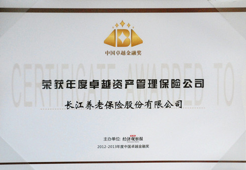由国内最具影响力的综合类财经报刊《经济观察报》主办的2012-2013年度“中国卓越金融奖”评选结果揭晓,我司在众多的参选金融机构中脱颖而出,荣获“中国卓越金融奖.年度卓越资产管理保险公司”奖项。
