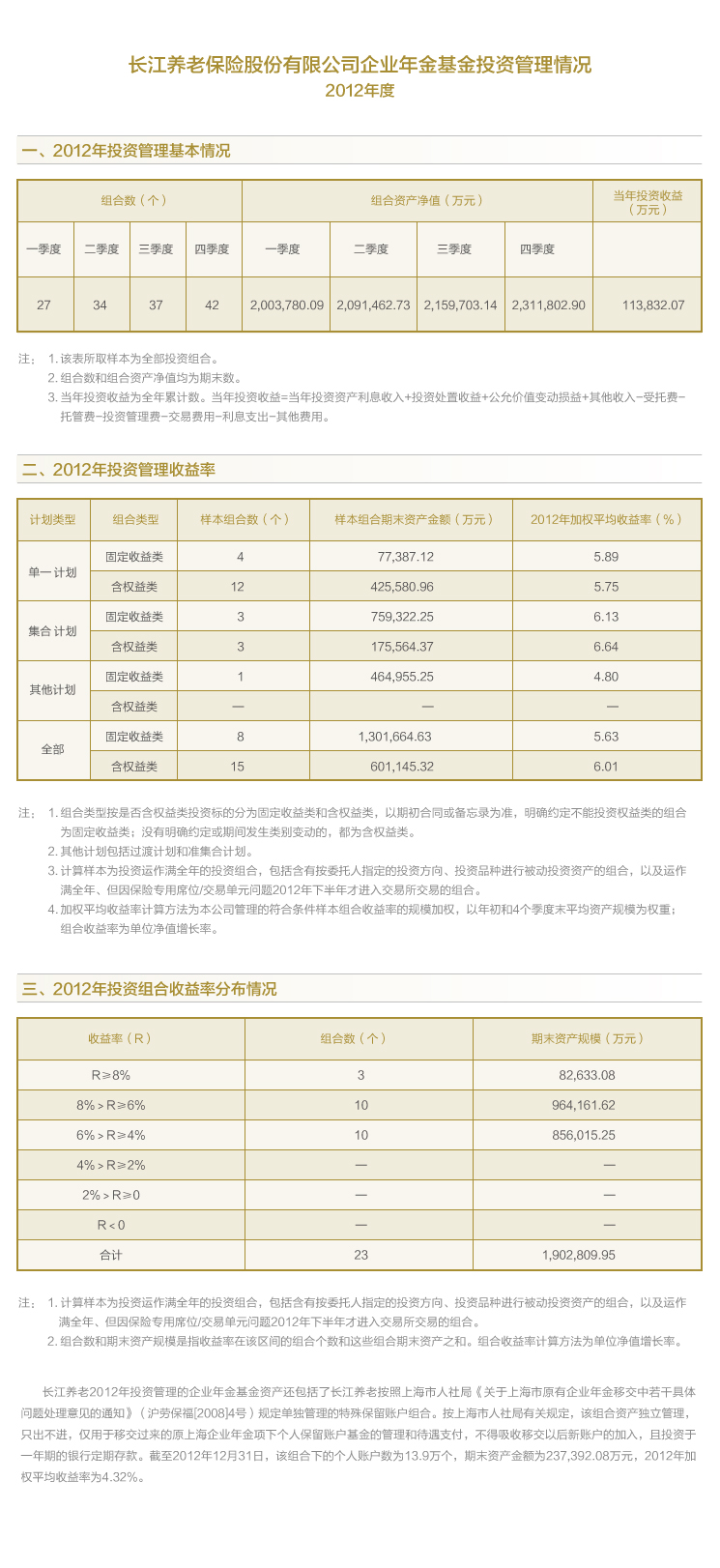 长江养老保险股份有限公司企业年金基金投资管理情况2012年度