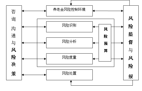 持续有效的风险控制是养老金管理公司稳重经营的安全保障。金融领域的风险本身就很复杂,其管理控制也极具挑战,故风险管理在现代经济和金融理论体系中占据着重要位置。养老金业作为现代金融服务业的一个分支,也是终日同风险打交道。养老金风险控制涉及各管理机构、监管机构以及其他利益相关人在对养老金投资运营过程中的风险进行全面识别、衡量地基础上,有计划有目的地处理控制各类风险的过程。除了一般意义上风险识别、风险评估、风险处置的程序外,风险控制主要通过风险预算、风险监督、风险报告、风险决策等手段来实现(见图一)。