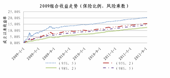 2009年沪深300指数由1817.73点上涨至3575.69点。2009年2009组合表现明显好于2008组合,主要由于2009组合随着权益市场的上涨,能够快速积累安全垫,组合的权益仓位高于2008组合。