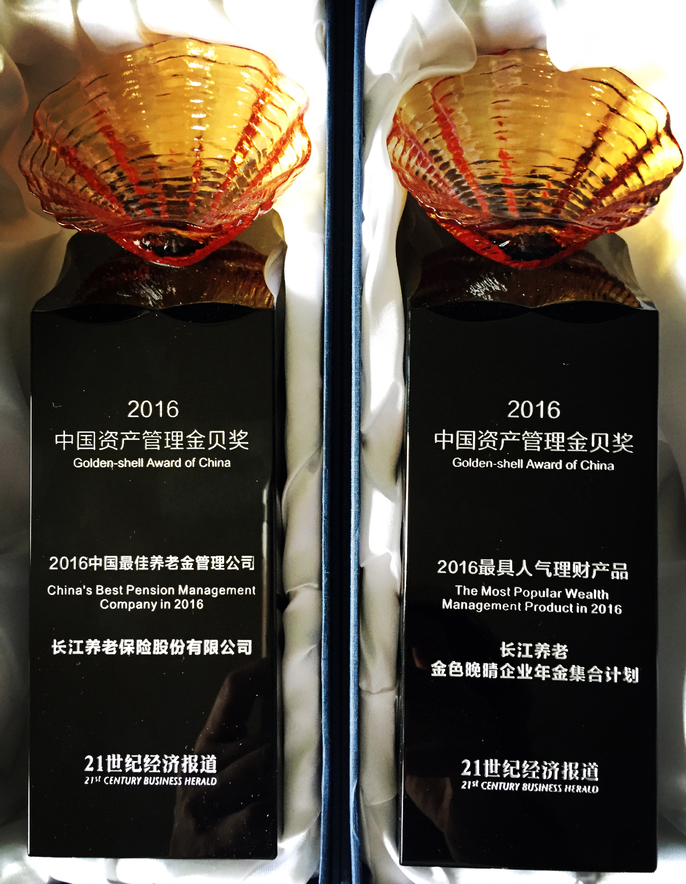 7月16日,2016年中国资产管理“金贝奖”在上海揭晓。长江养老荣获“2016中国最佳养老金管理公司”,是保险行业内唯一获此荣誉的公司。公司旗下的“金色晚晴企业年金集合计划”同时荣获“2016年最具人气理财产品”。一举斩获两项大奖,展现了公司行业领先的养老金管理能力。