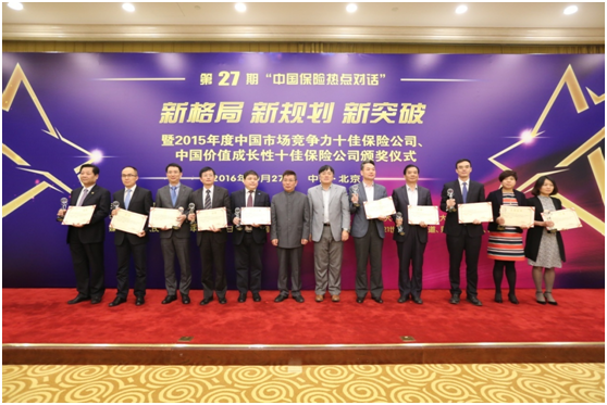 10月27日,由中国保险报、中央财经大学中国精算研究院主办的第27期中国保险热点对话在京举办,与会嘉宾围绕“新格局 新规划 新突破”主题进行演讲发言,安信农险党委书记乔中兴参加对话交流。会上,十家寿险公司和十家财险公司获颁“2015年度中国市场竞争力十佳保险公司”,十家寿险公司和安信农险等十家财险公司获颁“2015年度中国价值成长性十佳保险公司”,安信农险作为唯一一家农业保险公司获此殊荣。