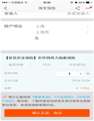 1.投保地址为投保人根据农作物种植的地级市,由投保人手动选择投保地址。