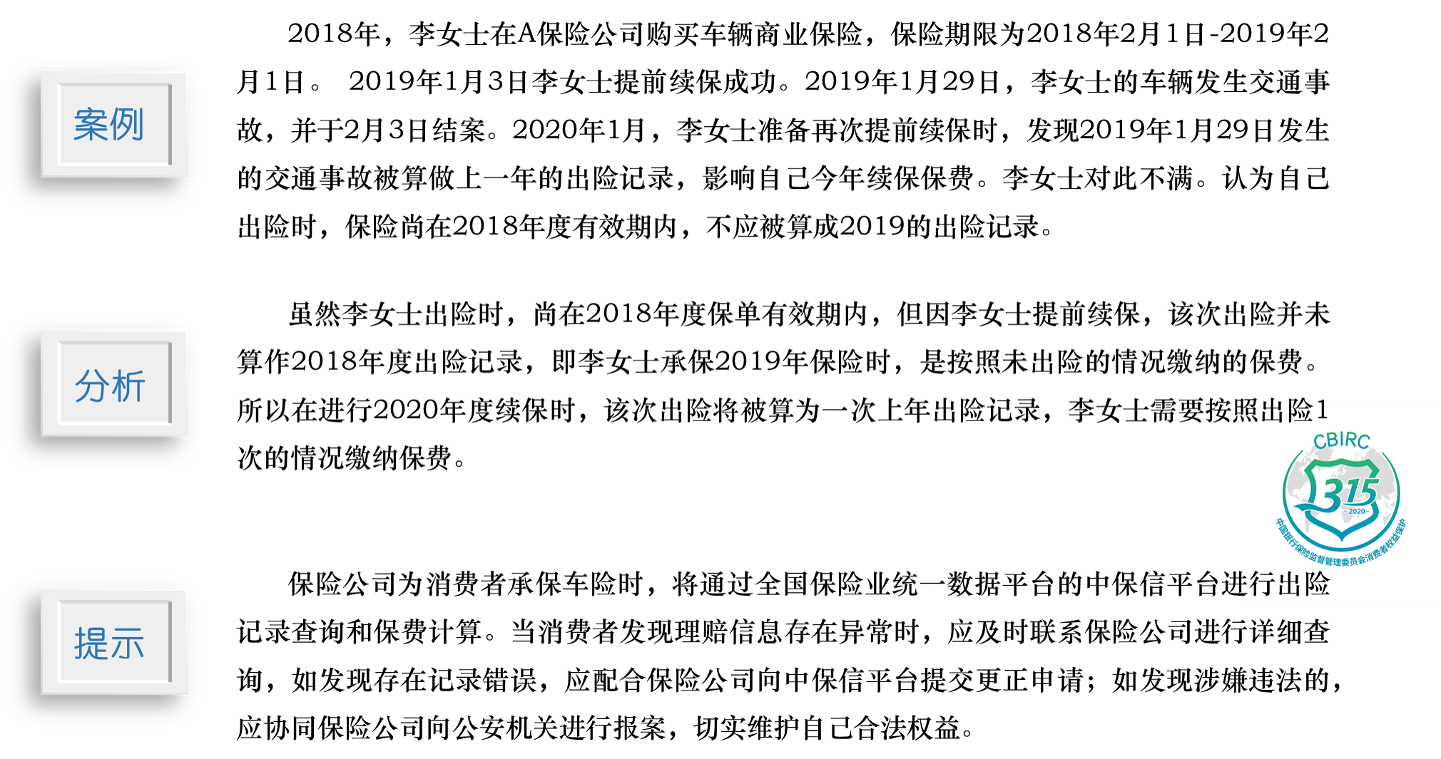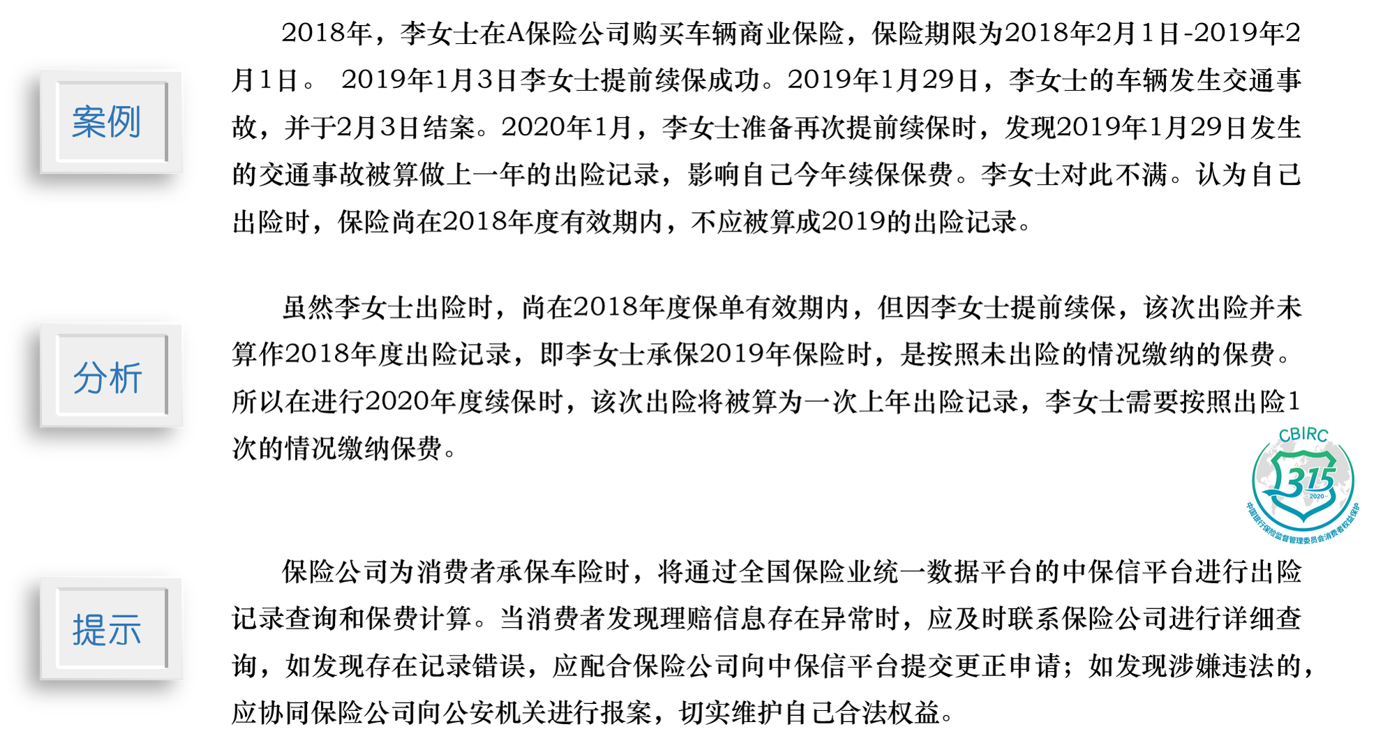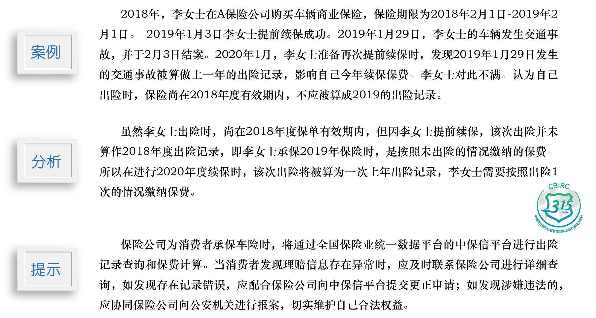 3·15|以案说险:提前续保后再出险的次数会影响哪一年承保保费计算