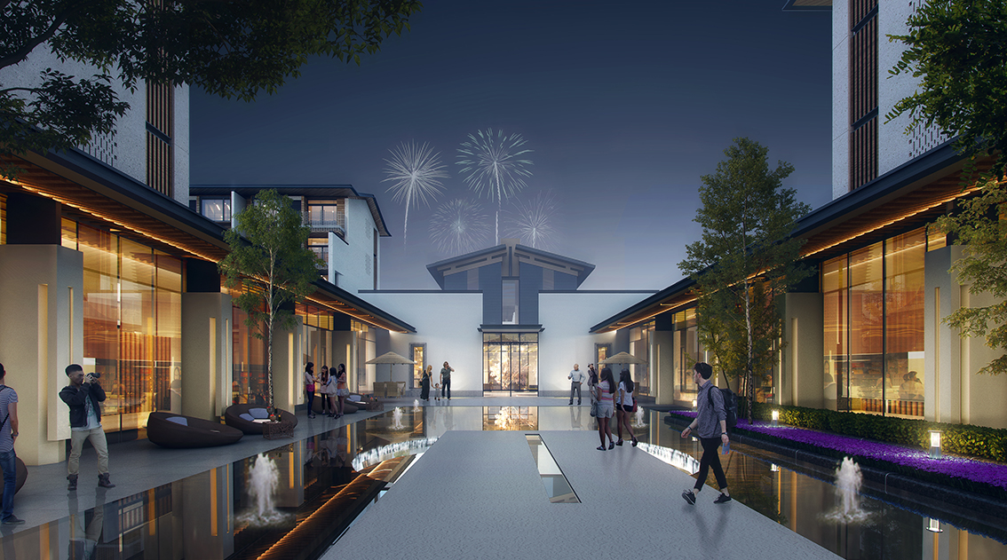 社区公寓设计上充分研究了室内室外融合的可能性,通过不同进深的房间的组合制造更多的露台和阳台,引入空中院子和中式院子的独有户型,房型种类包括一室户、一室一厅、两室一厅,提供多种入住乐趣。