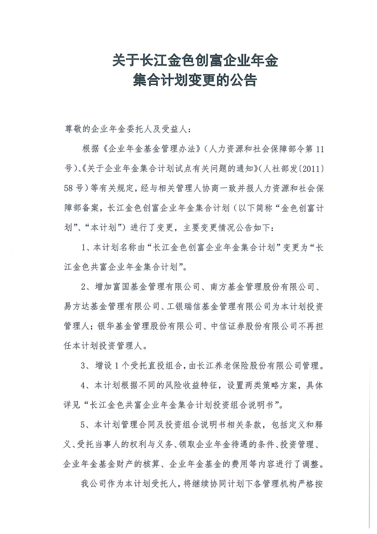 关于长江金色创富企业年金集合计划变更的公告(2021年12月)