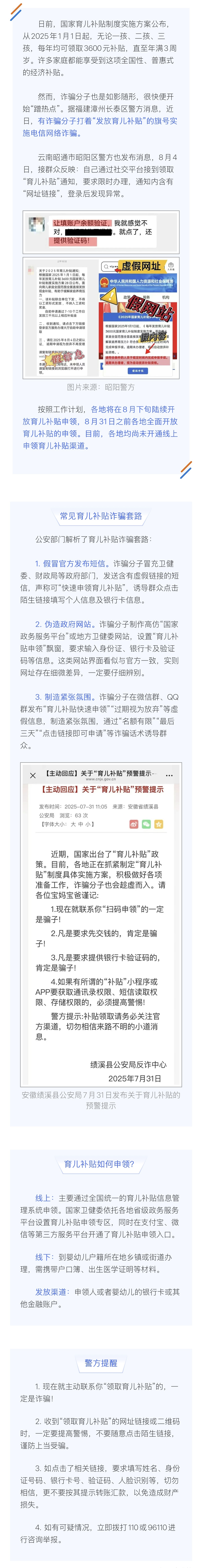 【风险提示】这些“育儿补贴”不要领!多地警方提醒