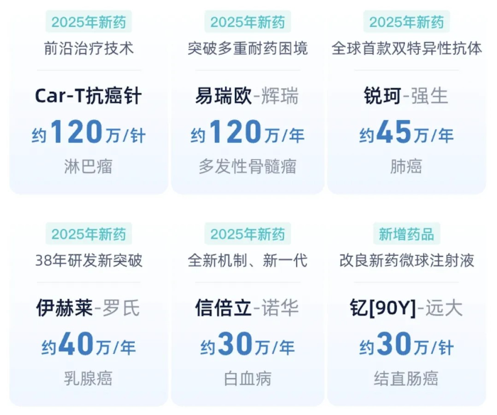 这其中包含了肿瘤特药271种,Car-T抗癌针5种,比如鼎鼎大名的倍诺达、福可苏,就连25年的新药易瑞欧、锐可、国产新一代CDK抑制剂赛坦欣也包含在内。