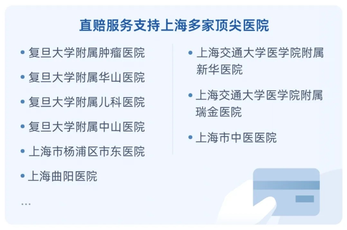 蓝医保的直赔医院拓展至28家,支持上海多家顶尖医院,如复旦大学附属肿瘤医院、瑞金医院、儿科医院、新华医院、华山医院等等。