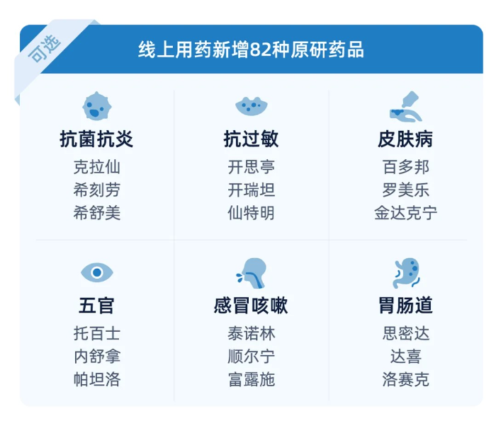 门诊原研药免费新增82种,疗效更好,比如我们常用的希舒美、达喜、开瑞坦等,日常用药品质直接拉满。