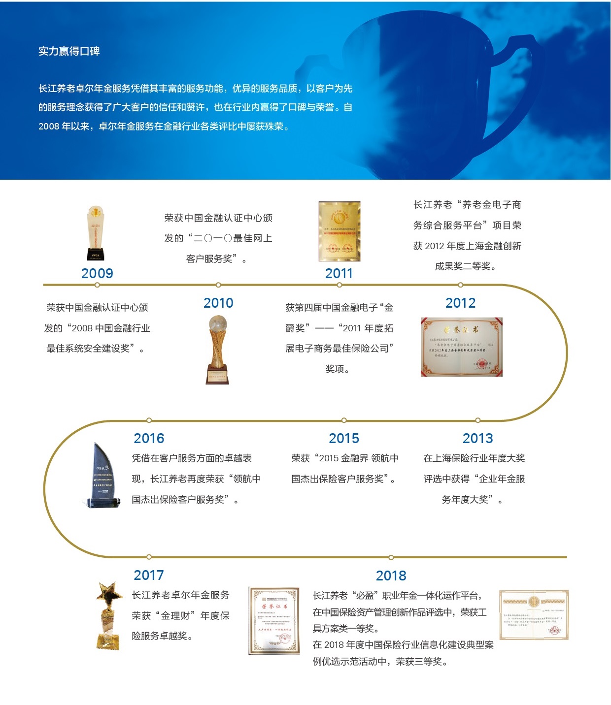锦瑟华年,时光绕指流转。2009年在夏花次第绽开的季节,长江人用心栽种下“卓尔之树”,立愿将富含和谐之美、人本之情、绿色之韵、服务之诚的卓尔服务奉献给广大年金参保企业和受益人,一路构建起具有长江特色的卓尔年金服务品牌和网上服务优势,成为国内首家通过网上服务实现运营服务无纸化、100%业务类型全受理的养老金机构。
