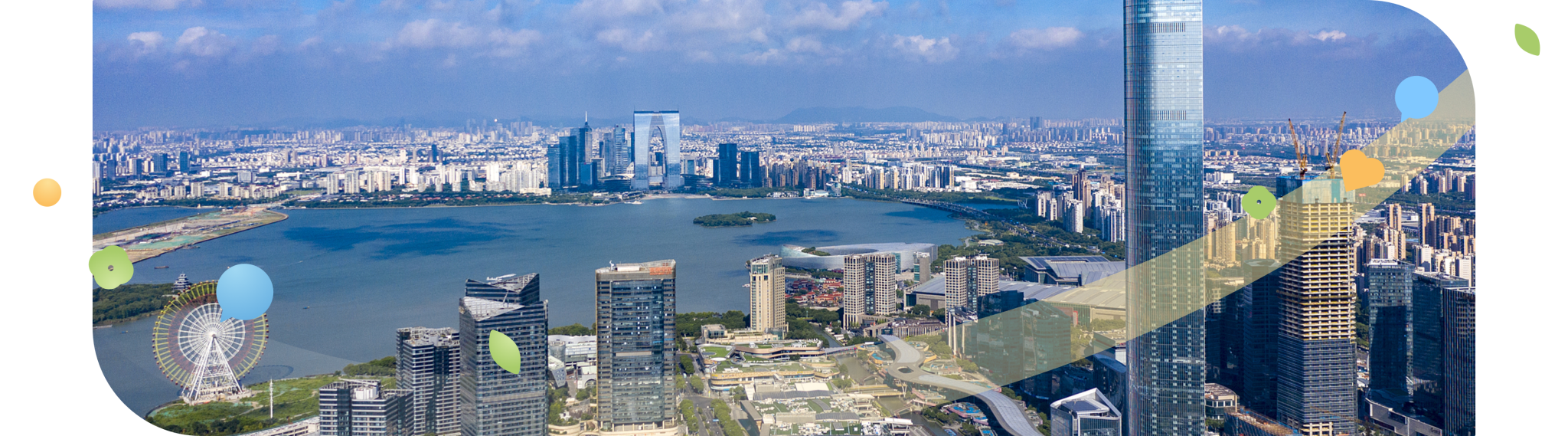 苏州湾中心广场、永旺梦乐城、苏州城市客厅、天鹅湖公园、太湖、旺山景区等