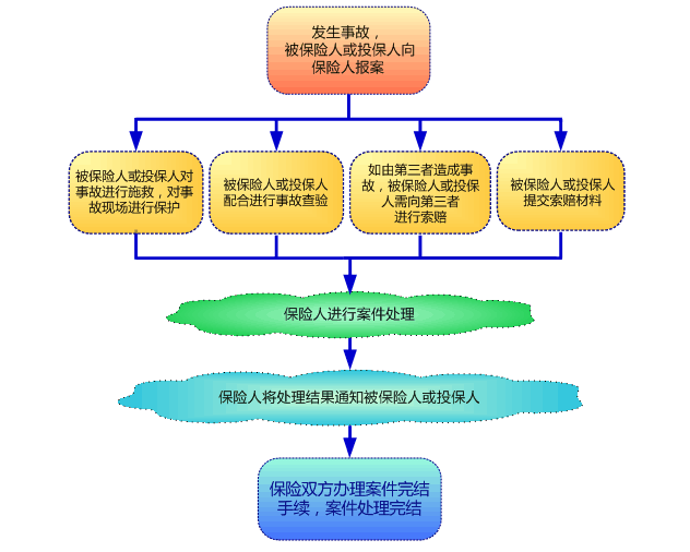 1、事故处理完毕后,请您根据我们的提示尽快提交索赔材料,以便我们能够及时向您支付赔款。